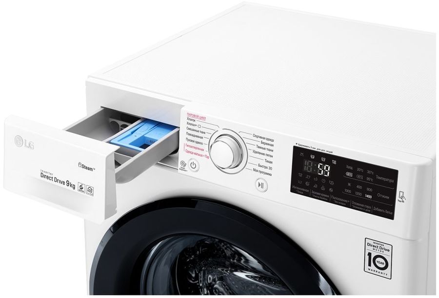 LGБытовая техникаСтиральные машиныСтандартные стиральные машиныСтиральная машина LG F4M5VS6W 56см, 9кг, дозагрузка белья, функцией пара, AI DD, «6 движений заботы».
